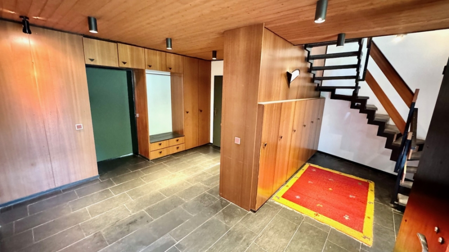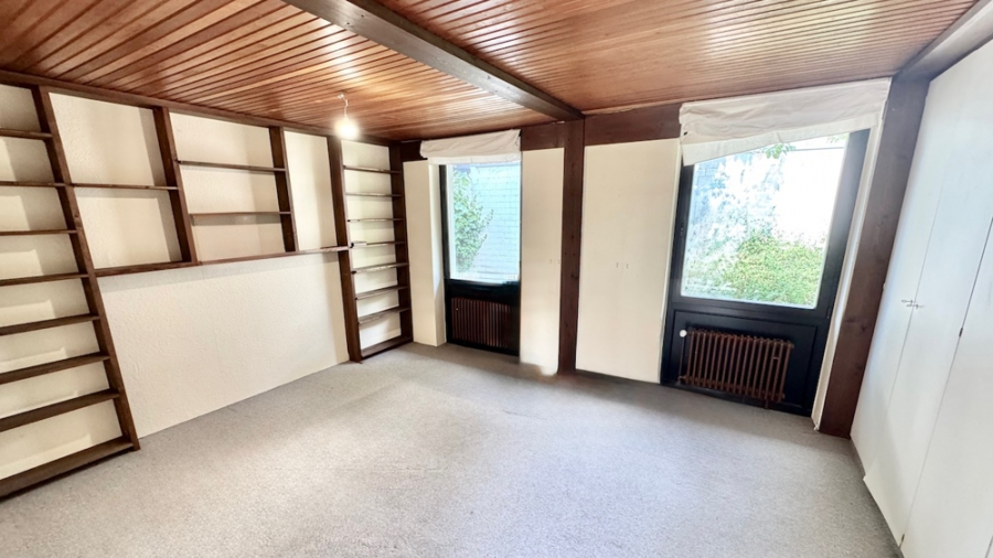 DAS URSPRÜNGLICHE EINFAMILIENHAUS WURDE IN 1971 IN MASSIVER, 1-GESCHOSSIGER BAUWEISE ALS BUNGALOW MIT FLACHDACH ERRICHTET. DER VORDERE BAUKÖRPER IST GRÖßTENTEILS UNTERKELLERT UND IN WANNE GEBAUT.