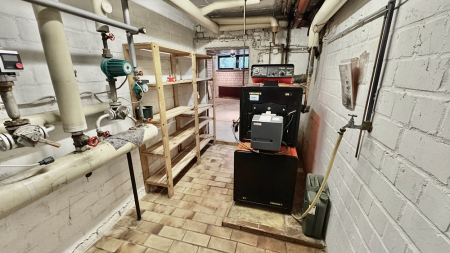 ...IM KELLERGESCHOSS: EIN FLUR, EIN HOBBYRAUM MIT DEN HAUSANSCHLÜSSEN, EINE WASCHKÜCHE MIT VORRATSFLÄCHE, EIN HEIZUNGSRAUM UND EIN HEIZÖLTANKRAUM MIT EINEM 7.500 LITER FASSENDEN STAHLTANK.