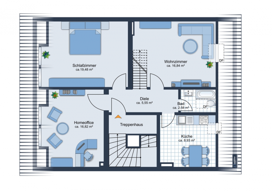 DIE WOHNFLÄCHE DER HIER ANGEBOTENEN WOHNUNG INKL. DEM AUSGEBAUTEN DACHBODEN BETRÄGT CA. 91,15 QM. DIE AUFTEILUNG DER WOHNUNG ENTNEHMEN SIE DEN BEIGEFÜGTEN GRUNDRISS-SKIZZEN.