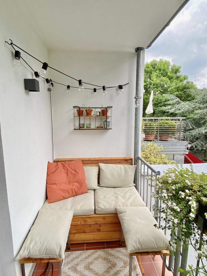 DER SÜD/ÖSTLICH AUSGERICHTETE BALKON BIETET EINEN BLICK IN DIE RÜCKWÄRTIGE KULISSE MIT VIEL GRÜN.