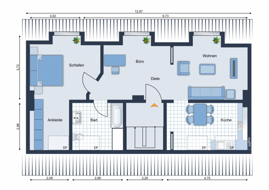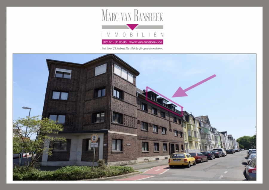 TRAUMHAFTE 2 ZIMMER-STUDIOWOHNUNG IM DACHGESCHOSS EINES GEPFLEGTEN MEHRFAMILIENHAUSES IM HERZEN VON KREFELD-UERDINGEN. DIE BEWOHNERSTRUKTUR DES HAUSES IST SEHR ANGENEHM, MITTLEREN ALTERS.